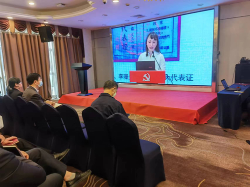 隨后,楊宇聲情并茂地講述了自己參加黨的二十大的經(jīng)歷和體會,闡釋了對黨的二十大報告新思想的理解與感悟。她從黨的二十大的主題、主要成果,過去5年的工作和新時代10年的偉大變革,馬克思主義中國化時代化,中國式現(xiàn)代化,全面建設社會主義現(xiàn)代化國家的目標任務,堅持黨的全面領(lǐng)導和全面從嚴治黨,應對風險挑戰(zhàn)等七個方面,進行了系統(tǒng)闡述和深入解讀,贏得了陣陣掌聲。