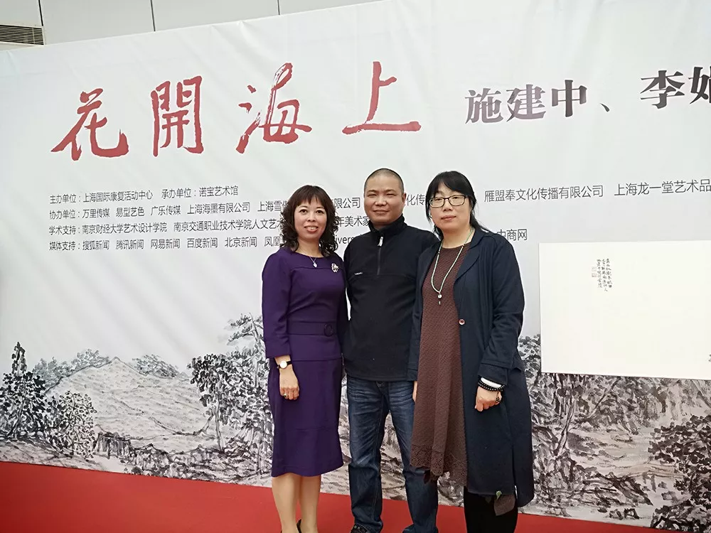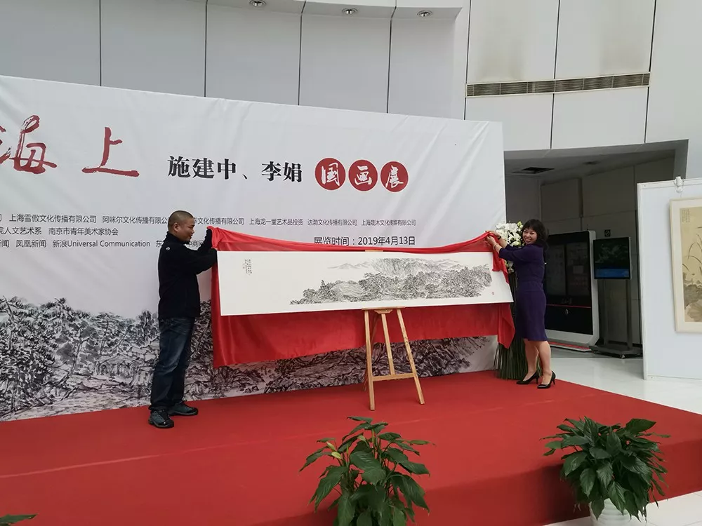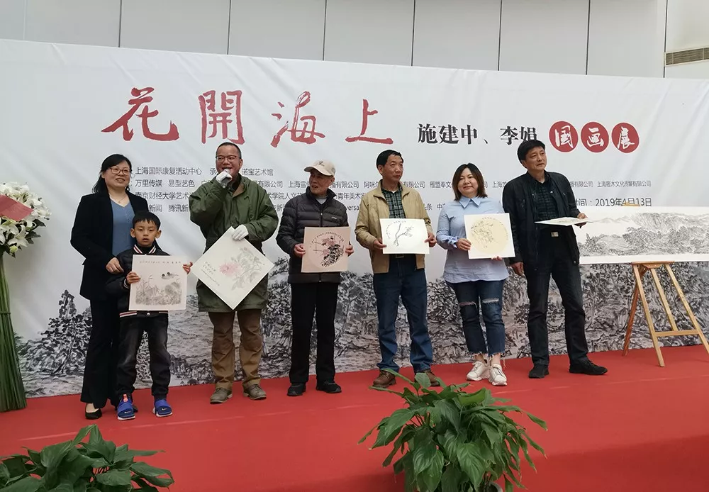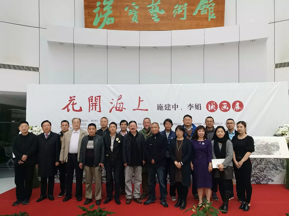 4月13日上午,以“花開海上”為主題的施建中、李娟國畫作品展在上海諾寶藝術(shù)館開幕。