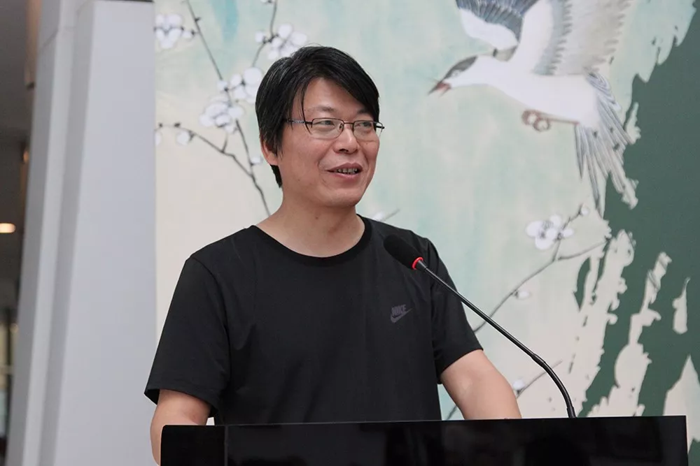 美術(shù)學(xué)博士、藝術(shù)學(xué)博士后、南京財(cái)經(jīng)大學(xué)藝術(shù)設(shè)計(jì)學(xué)院教授,南京市青年美術(shù)家協(xié)會(huì)副主席、江蘇省徐悲鴻研究會(huì)理事施建中先生作為嘉賓代表講話。