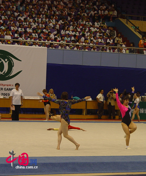 10月10日下午,特奧會女子體操競技決賽在上海國際體操中心進行中,場上的運動員認真用心比賽,爭取做到最好。(文/圖 中國網(wǎng) 安磊)