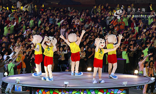 觀眾不用拿道具,所有的家伙都集中到了志愿者手中。志愿者身穿綠色T恤,站在舞臺(tái)四周、座位旁邊、看臺(tái)的走廊上。他們一會(huì)揮舞熒光棒,一會(huì)跟著節(jié)奏左右搖晃彩帶;跳操的時(shí)候,不但要帶頭跳,還要鼓動(dòng)觀眾站起來;閉幕式最后跳集體舞時(shí),也是他們首當(dāng)其中,牽手跳起圓圈舞。如果不是這群可愛的自愿者在中間穿針引線,點(diǎn)燃大家的激情,含蓄的中國(guó)觀眾不會(huì)這樣直接熱烈地抒發(fā)自己的感情。(記者蔣佳佳、曹子琛)