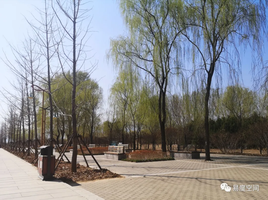 ▲通往湖面甬道北側(cè)的休息區(qū)