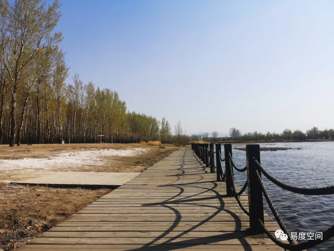 環(huán)湖木棧道非常適合游人的親水需求,事實(shí)上野鴨湖也很清澈,在棧道上步行,眺望湖面上飛翔的野鴨,觀賞水中的游魚(yú)是無(wú)比愜意的。