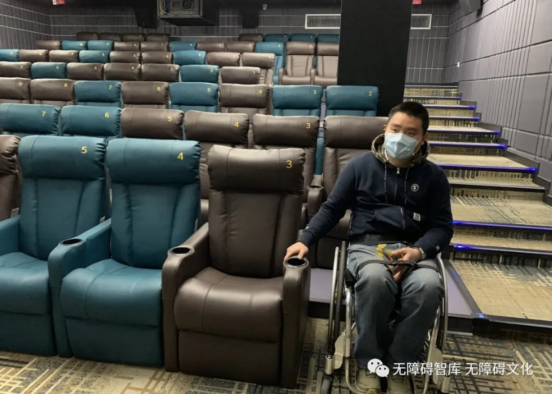 上圖為體驗(yàn)無(wú)障礙電影院的無(wú)障礙輪椅席位