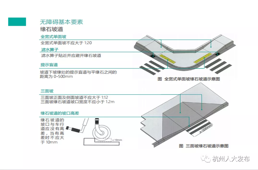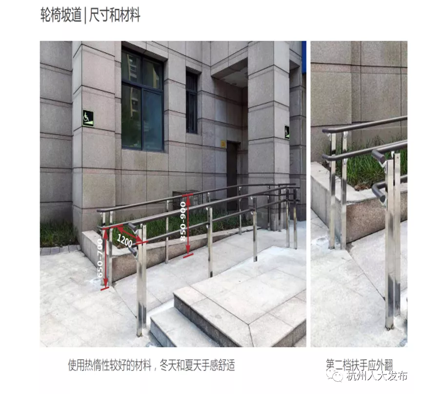 大美無障愛:發(fā)現(xiàn)美 傳遞愛 寫在前面的話: 紀(jì)錄片《輪椅上的城市》由智庫單位∪AD浙大設(shè)計(jì)院無障礙研究所受杭州市殘聯(lián)委托拍攝。在呂淼華書記關(guān)注下,無障礙研究所陸激教授主創(chuàng),周欣、方舟、浙大傳媒學(xué)院劉翔教授傾情拍攝,張華主演,邱媛等成員全程參與。 老張是誰? “老張”是每個(gè)人身邊的你,我,他。 早上7點(diǎn),老張出門比平時(shí)早了半個(gè)小時(shí),他預(yù)約了體檢,要空腹抽血。 老張不愛麻煩別人,但街上總會有意外。 戳視頻,看老張的日常 今天的行程有點(diǎn)趕,有好幾件事要辦,最重要的是,他得趕上下午5點(diǎn)的朗誦排練,晚上他要登臺,對此,老張盼了很久。 輪椅上的出行 每次去新的地方,老張心里都有準(zhǔn)備,但每每遇到馬路難題,他還是有些束手無策。 上不去的坡道 戳圖來幫助老張 《無障礙設(shè)計(jì)規(guī)范》 3.1.1 緣石坡道應(yīng)符合下列規(guī)定 1 緣石坡道的坡面應(yīng)平整、防滑; 2 緣石坡道的坡口與車行道之間宜沒有高差;當(dāng)有高差時(shí),高出車行道的地面不應(yīng)大于10mm; 3 宜優(yōu)先選用全寬式單面坡緣石坡道。 輪椅上的公交 公共交通越來越便利,老張有時(shí)候也會選擇不開車,但偶爾公共交通也會為難他。 過高的公交站臺 戳圖來幫助老張 《無障礙設(shè)計(jì)規(guī)范》 4.5 公交車站 4.5.1 公交車站處站臺設(shè)計(jì)應(yīng)符合下列規(guī)定: 1 站臺有效通行寬度不應(yīng)小于1.50m; 坐著輪椅去辦事 有了手機(jī)和網(wǎng)絡(luò),對老張來說,生活變得更加便利了。但總有例外的時(shí)候,比如取錢。 推不上的出入口 戳圖來幫助老張 《無障礙設(shè)計(jì)規(guī)范》 3.3.2 無障礙出入口應(yīng)符合下列規(guī)定: 1 出入口的地面應(yīng)平整、防滑; 2 室外地面濾水算子的孔洞寬度不應(yīng)大于15mm; 6 建筑物無障礙出入口的上方應(yīng)設(shè)置雨棚。 輪椅上的圖書館 看書,是老張的愛好之一。只不過,圖書館里又高又大的還書臺,還是讓老張犯了難。 太高的還書臺 戳圖來幫助老張 《無障礙設(shè)計(jì)規(guī)范》 3.15 低位服務(wù)設(shè)施 3.15.1 設(shè)置低位服務(wù)設(shè)施的范圍包括問詢臺、服務(wù)窗口、電話臺、安檢驗(yàn)證臺、行李托運(yùn)臺、借閱臺、各種業(yè)務(wù)臺、飲水機(jī)等。 3.15.2 低位服務(wù)設(shè)施上表面距地面高度宜為700mm ~ 850mm,其下部宜至少留出寬750mm,高650mm,深450mm供乘輪椅者膝部和足尖部的移動空間。 3.15.3 低位服務(wù)設(shè)施前應(yīng)有輪椅回轉(zhuǎn)空間,回轉(zhuǎn)直徑不小于1.50m 。 3.15.4 掛式電話離地不應(yīng)高于900mm 。 坐輪椅游西湖 身為杭州人,老張對西湖很有感情。但西湖邊總有一些地方,他只能望而卻步。 進(jìn)不去的景區(qū)門 戳圖來幫助老張 《無障礙設(shè)計(jì)規(guī)范》 9 歷史文物保護(hù)建筑無障礙建設(shè)與改造 9.2 無障礙游覽路線 9.2.1 對外開放的文物保護(hù)單位應(yīng)根據(jù)實(shí)際情況設(shè)計(jì)無障礙游覽路線,無障礙游覽路線上的文物建筑宜盡量滿足游客參觀的需求。 9.3 出入口 9.3.1 無障礙游覽路線上對游客開放參觀的文物建筑對外的出入口至少應(yīng)設(shè)1處無障礙出入口,其設(shè)置標(biāo)準(zhǔn)要以保護(hù)文物為前提,坡道、平臺等可為可拆卸的活動設(shè)施。 輪椅上的每天有難關(guān), 但也會有華彩~ 輪椅上的那個(gè)人被世界照亮著 也會想著去照亮這個(gè)世界 老張也不例外