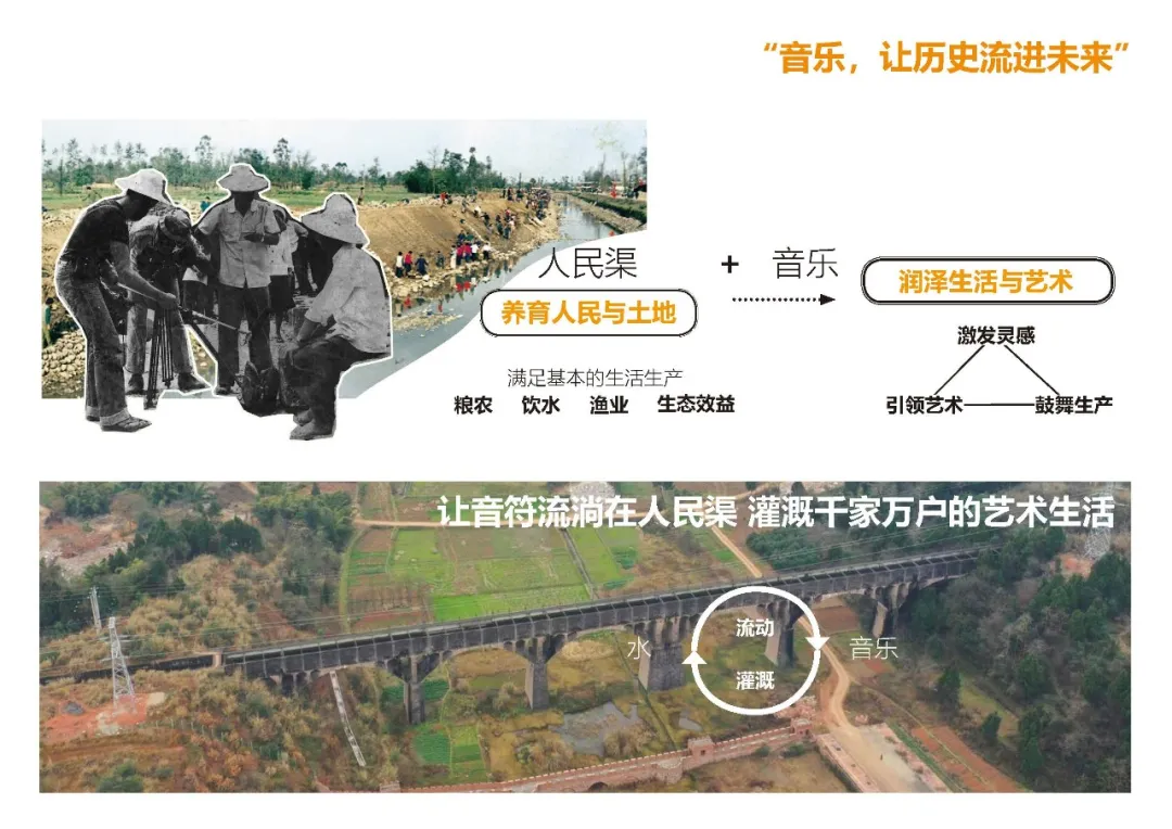 在中央公園的設(shè)計中,伴著人民渠有一條貫穿東西的綠徑,其與人民渠時而并行、時而交錯,在創(chuàng)造豐富體驗的同時講述人民渠的歷史,繼而從不同層級上打造風(fēng)景融入日常生活的凱州新城,藍綠交織、宜居宜游的山水公園城市,成渝走廊上全域生境體系的綠色空間,以及以“音樂+藝術(shù)”為引領(lǐng)的西南地區(qū)音樂高地。