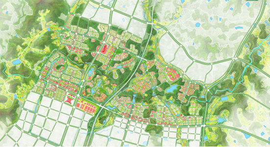 凱州新城核心區(qū)城市設(shè)計總面積約為7.36km2。規(guī)劃將具有“川西林盤”特色的基地進行梳理,以人與自然和諧共生的經(jīng)驗為示范,以現(xiàn)狀山水格局為框架,把城市和生態(tài)環(huán)境作為一個“生命有機體”整體設(shè)計,秉持著山水共生、詩意棲居的理念,構(gòu)建生態(tài)文明時代的營城典范。