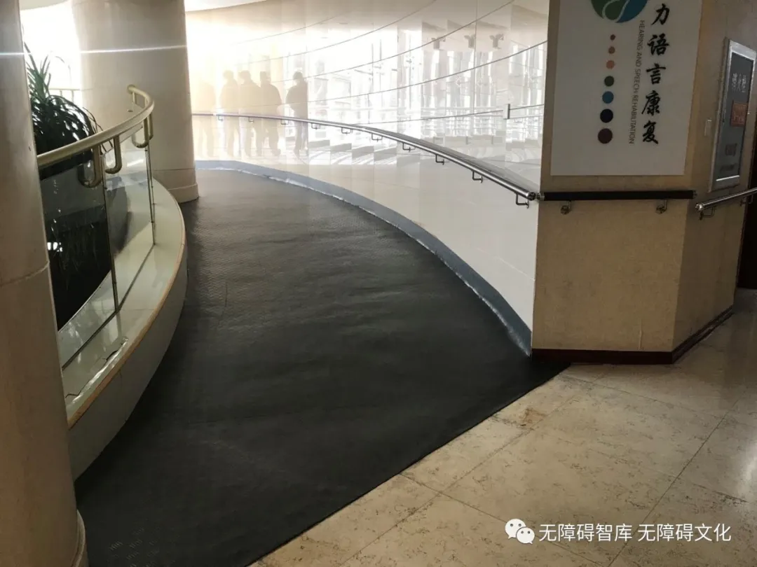 上圖為這座建筑的無障礙大坡道,每一層都有平層柯緩沖休息