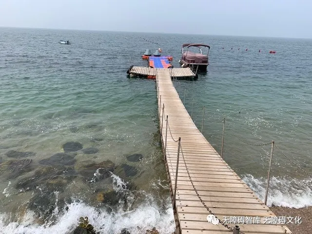 游艇碼頭,這個地方不大約有二三十平,但做得很人性化,輪行者可以直達其上,一側前面設有欄桿,讓近距離觀海有了幾分安全感。如果輪行者本人尚有一定自主行動能力,可扶欄而起遠眺觀海。此時,如果有海鷗翔集,穿行其間,真是愜意無限。