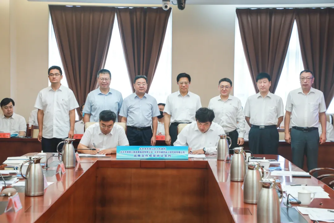 2020年8月5日,北京市建筑設(shè)計(jì)研究院有限公司與石景山區(qū)政府簽署戰(zhàn)略合作協(xié)議。同日,石景山區(qū)政府還與北京市首都公路發(fā)展集團(tuán)有限公司簽署戰(zhàn)略合作協(xié)議。北京市國(guó)資委黨委書記、主任張貴林,石景山區(qū)區(qū)委書記常衛(wèi),北京建院黨委書記、董事長(zhǎng)、總建筑師徐全勝,首發(fā)集團(tuán)黨委書記、董事長(zhǎng)張閩參加簽約儀式。石景山區(qū)區(qū)委副書記、區(qū)長(zhǎng)李新主持簽約儀式