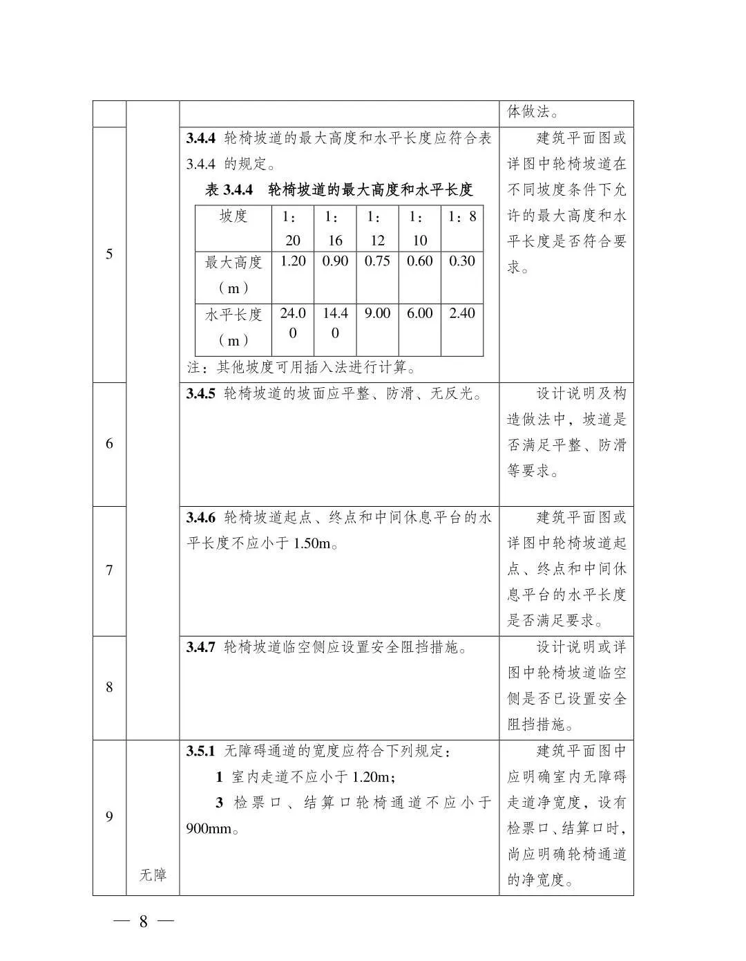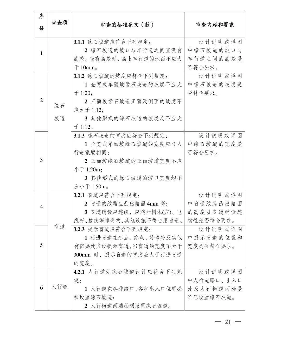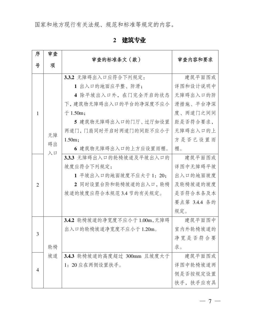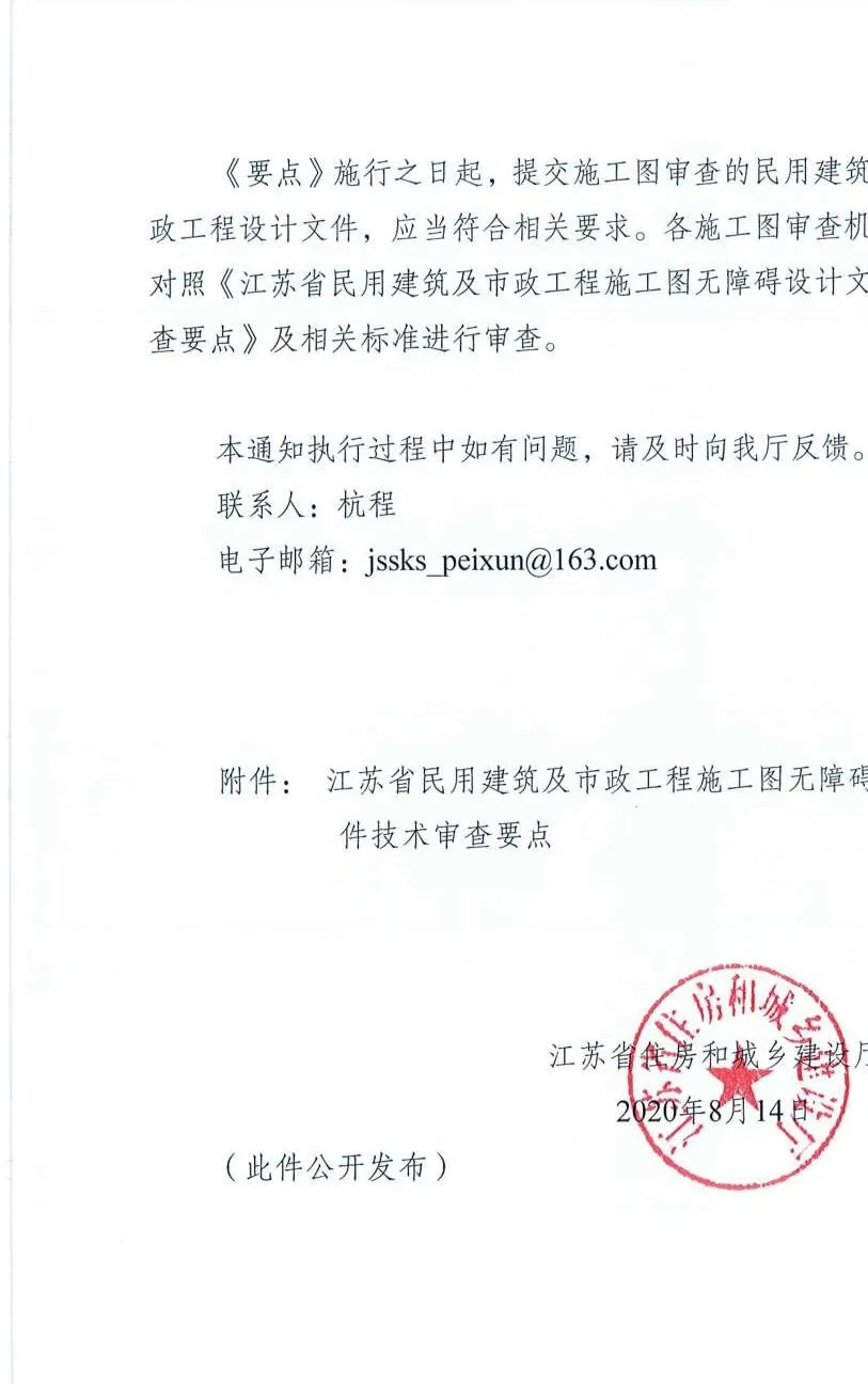大美無障愛:發(fā)現(xiàn)美 傳遞愛 寫在前面的話 這份文件很重要!它的意義在于全國第一個(gè),具有開先河的意義!值得各地相關(guān)部門學(xué)習(xí)借鑒! 從源頭抓起,從建筑設(shè)計(jì)源頭抓起,讓無障礙在建筑工程中真正落地,不留死角,不留遺憾,不建后再改,不勞民傷財(cái)!一直是近年來無障礙推進(jìn)者和需求者最強(qiáng)烈的呼聲!全國人大代表、中國殘聯(lián)副主席呂世明在全國人大建議中曾提到,我國無障礙環(huán)境建設(shè)快速發(fā)展,成效顯著,但仍存在管理缺失、設(shè)計(jì)標(biāo)準(zhǔn)難以落實(shí)、施工質(zhì)量不達(dá)標(biāo)等問題。因此建議國家有關(guān)部門盡快制定《行業(yè)無障礙專項(xiàng)評審審查認(rèn)證認(rèn)可機(jī)制》,避免無障礙設(shè)施的缺位、形同虛設(shè)或是先建后拆。應(yīng)盡快建立一套行業(yè)無障礙的專業(yè)評審、認(rèn)證、監(jiān)督、驗(yàn)收和處罰機(jī)制,這樣可以從源頭上保證無障礙建設(shè)系統(tǒng)完整、高標(biāo)高質(zhì)。 近日,江蘇省住房和城鄉(xiāng)建設(shè)廳組織編制的《江蘇省民用建筑及市政工程施工圖無障礙設(shè)計(jì)文件技術(shù)審查要點(diǎn)》正式下發(fā),該文件強(qiáng)化機(jī)制,源頭治理,前置審查、措施得力!此舉對我國推進(jìn)高質(zhì)量、高品質(zhì)、全覆蓋無障礙環(huán)境建設(shè)具有重要的現(xiàn)實(shí)意義和深遠(yuǎn)的歷史意義! 在全面步入小康社會的今天,無障礙已成為民用建筑和市政工程不可或缺的重要內(nèi)容。無障礙是衡量建筑和城市建設(shè)的溫度計(jì)。江蘇省住建廳這份文件的出臺,強(qiáng)有力地制止了無視無障礙的設(shè)計(jì),實(shí)施無障礙設(shè)計(jì)圖紙?jiān)搭^審查,這就是要在設(shè)計(jì)師頭腦中固化深化無障礙理念這根弦,任何缺少或不規(guī)范的設(shè)計(jì)都會導(dǎo)致通不過圖紙審查這一關(guān),這種做法的提出是職能部門盡職盡責(zé),對人民負(fù)責(zé)、對國家負(fù)責(zé)、對歷史負(fù)責(zé)的體現(xiàn)!是新時(shí)代綜合治理能力和水平現(xiàn)代化的提升!我們?yōu)?/span>江蘇省住房和城鄉(xiāng)建設(shè)廳點(diǎn)贊!希望各地?zé)o障礙推進(jìn)者認(rèn)真學(xué)習(xí)借鑒江蘇做法,并在當(dāng)?shù)丶右酝茝V和推進(jìn)! 本文件根據(jù)PDF文檔進(jìn)行轉(zhuǎn)載,相關(guān)表格內(nèi)容以圖片形式展示,如給視障者閱讀帶來不便深表歉意,待相關(guān)網(wǎng)站推出后,我號再詳細(xì)轉(zhuǎn)載!
