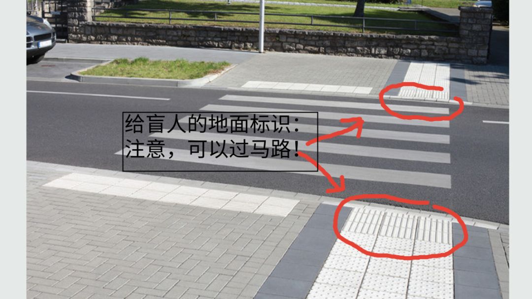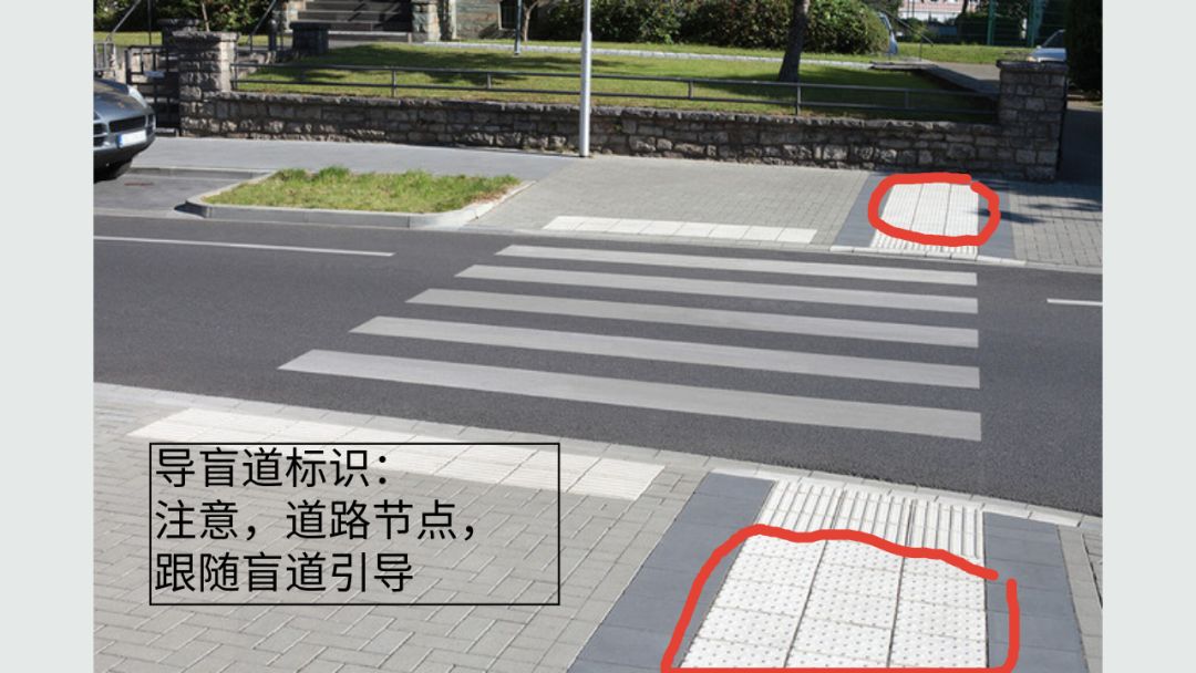 城市中紅綠燈人行過街口,以前只是有紅綠燈和盲人鐘【12】?,F(xiàn)在導(dǎo)盲道也成了標(biāo)準(zhǔn)配置。
