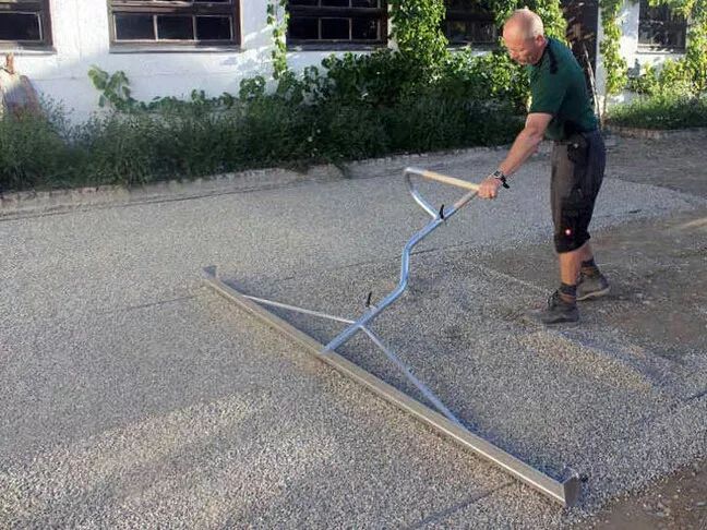 人工整理鋪路下的碎石鋪墊層【9】。其實下面還有承重層與防凍層,這兩層會用機器進(jìn)行壓實。