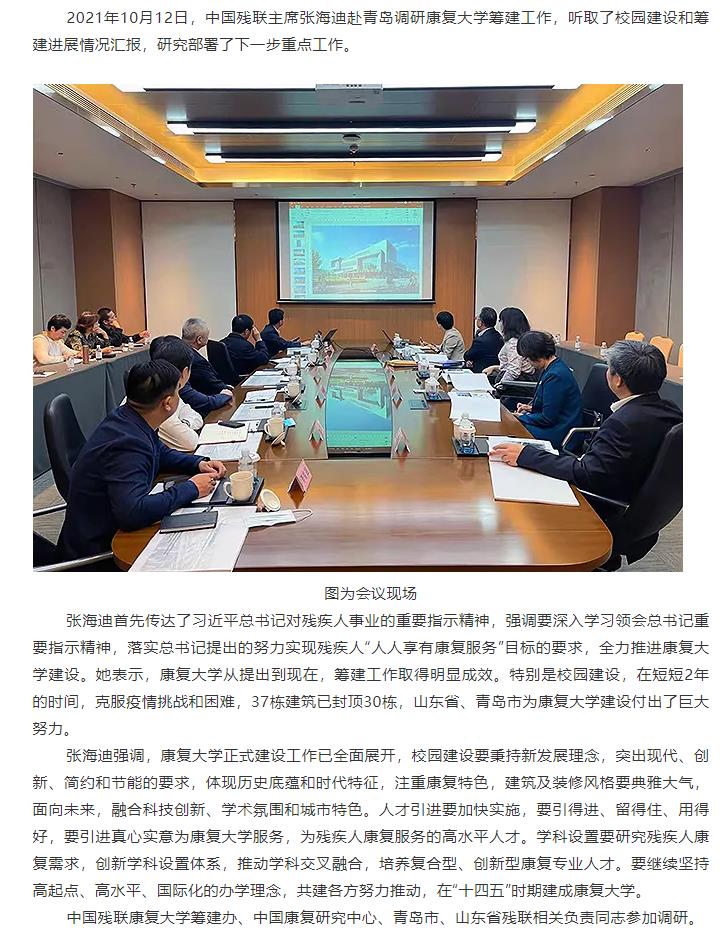 【要聞推薦】張海迪調(diào)研推動康復(fù)大學(xué)籌建工作——面向未來,融合科技創(chuàng)新、學(xué)術(shù)氛圍和城市特色