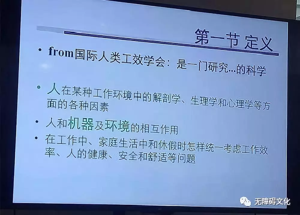 第二、  認識“人體工學”。無障礙中心技術總監(jiān)郭靜老師以理論與實際相結合的方法,講授“人體工學原理及應用”知識,并探討了人體工學在無障礙設計中的運用。郭靜老師的講課分為:第一章人體工學的原理,第二章人體的結構與計測,第三章人體工學的應用,強調無障礙設計最基礎的依據(jù)是人體工學。
