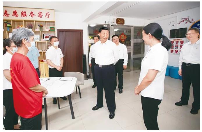 2022年6月28日,中共中央總書記、國家主席、中央軍委主席習近平在湖北省武漢市考察。這是28日下午,習近平在東湖高新區(qū)左嶺街道智苑社區(qū)志愿服務客廳,向社區(qū)工作者、下沉黨員干部、志愿者了解基層疫情聯(lián)防聯(lián)控機制運行情況。新華社記者 謝環(huán)馳/攝