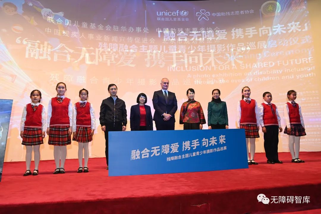 啟動(dòng)式上,聯(lián)合國兒童基金會(huì)駐華辦事處副代表雷納德、北京市規(guī)劃展覽館館長徐詠梅、中國殘疾人特殊藝術(shù)指導(dǎo)中心主任李東梅、中國助殘志愿者協(xié)會(huì)副會(huì)長張雁華,中國盲人協(xié)會(huì)副主席、中國視障文化資訊服務(wù)中心副主任何川等與殘障兒童一起共同為“殘障融合”兒童青少年攝影展揭幕;中國助殘志愿者協(xié)會(huì)向聯(lián)合國兒童基金會(huì)駐華辦事處贈(zèng)致謝匾——“共育心靈無障礙,殘健融合向未來”。北京市盲校師生朗誦詩歌《看見明天》,中國殘疾人藝術(shù)團(tuán)著名青年歌手蔣燦、朱黎演唱張海迪主席作詞的《世界有你就溫暖》志愿者之歌,將活動(dòng)推向高潮。中國殘聯(lián)副主席、中國助殘志愿者協(xié)會(huì)會(huì)長呂世明指出,在北京2022冬殘奧會(huì)成功舉辦一周年之際,舉辦“融合無障愛、攜手向未來”殘障融合主題兒童青少年攝影作品巡展啟幕式意義重大、影響深遠(yuǎn)。殘障融合主題兒童青少年攝影作品巡展活動(dòng),緊扣人文無障礙主題,以中國殘障群體平等共享、融合發(fā)展為生活場景,傳遞環(huán)境無障礙、交流無障礙、心靈無障礙構(gòu)筑起的幸福家園和未來愿景。攝影展不僅有力配合中國無障礙環(huán)境立法工作,推進(jìn)無障礙環(huán)境展示館建設(shè),也有助于配合北京市首都核心區(qū)控規(guī)展提升城市人文形象,更有助于聯(lián)合國兒童基金會(huì)向國際社會(huì)推廣中國相關(guān)項(xiàng)目經(jīng)驗(yàn)和研究成果,展示中國人權(quán)保障形象。呂世明說,兒童和青少年是祖國的花朵,是國家的未來和希望,在幼小心靈中播撒“平等、融合、友好、共享”的火種,必將使其成為中國式現(xiàn)代化強(qiáng)國和為共同富裕而奮斗的棟梁之材。無障礙文化自信就是要從娃娃抓起,讓無障礙環(huán)境建設(shè)成果惠及人民,人人呼吁、人人參與、人人共享、人人受益,實(shí)現(xiàn)黨的二十大提出的“關(guān)注民生福祉,提升人民生活品質(zhì)”“促進(jìn)殘疾人事業(yè)的全面發(fā)展”的目標(biāo),讓人民群眾有更多的獲得感、幸福感和安全感,在通往幸福的道路上“不讓一個(gè)人掉隊(duì)”。