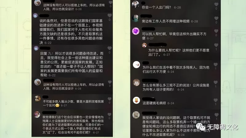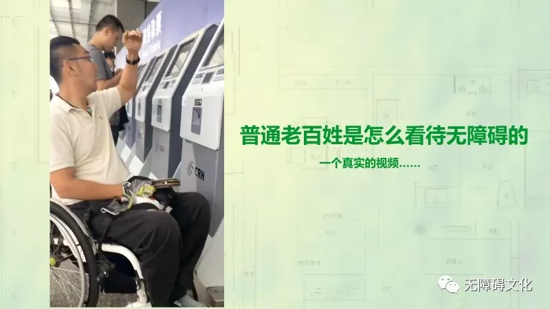 杜老師給我們講了一個真實的故事。研修營經(jīng)常會到各地考察無障礙情況,有次在火車站取票,面對高高的的取票機的不便,拍了一個視頻。上傳到抖音之后,有各種的觀點。