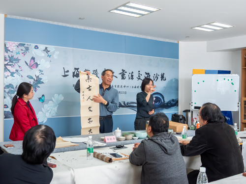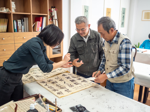 展示、交流環(huán)節(jié)持續(xù)近一個(gè)半小時(shí)?,F(xiàn)場(chǎng),大家時(shí)而交流用筆技巧,時(shí)而用手比劃設(shè)計(jì)布局。酣暢淋漓的書法沙龍讓殘疾人書法愛好者大飽眼福,收獲頗豐,紛紛坦言希望今后能多組織這樣的交流活動(dòng),不斷豐富殘疾人朋友的文化生活,提升大家的藝術(shù)鑒賞力!