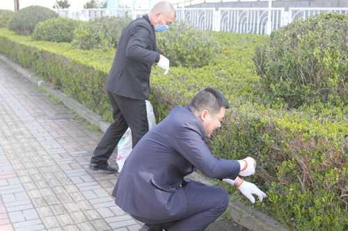 中心外圍綠化帶由于緊靠漕寶路、加油站及公交車站,來往行人很多,使得綠化帶樹叢中垃圾也較多,煙頭、紙片、塑料袋、飲料罐等雜物深潛綠地,既不衛(wèi)生整潔,也有礙市容環(huán)境??墒乔鍜咂饋聿⒉蝗菀祝貏e是這些垃圾雜物,個個藏在密密的樹叢之中,很難輕易清理干凈。但是困難難不倒黨員志愿者們,大家熱情高漲,不怕臟,不怕累,有的彎腰下蹲,有的鉆入樹叢,或用長柄鐵夾去夾,或用手直接去撿,硬是把垃圾從綠化帶深處一個一個“抓”出來。在清潔過程中,中心黨支部三個黨小組分片包干,做到了清潔一處,干凈一處,靚麗一處。在大家的共同努力下,綠化帶變得干干凈凈、煥然一新,同時也帶動了相關市民增強綠色環(huán)保意識。
