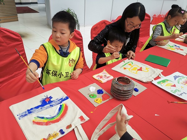 上海興東環(huán)保科技有限公司現(xiàn)場進(jìn)行了垃圾分類知識的宣傳介紹,通過垃圾分類趣味游戲,加深親子家庭對垃圾分類的認(rèn)識。尚想繪·創(chuàng)意空間的老師們現(xiàn)場指導(dǎo)小朋友們繪制環(huán)保袋,傳播環(huán)保意識。