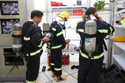演練以模擬蘭晶劇場發(fā)生火警開始。隨著模擬煙霧在劇場彌漫,消防演練正式開始。相關(guān)人員發(fā)現(xiàn)火情后立即啟動火災(zāi)應(yīng)急預(yù)案,疏散引導(dǎo)員立刻沖入火災(zāi)場所,帶領(lǐng)在場人員迅速按照預(yù)定的疏散路線進行撤離。用毛巾捂住口鼻,低姿、快速地穿越“煙霧”區(qū),趕往指定的安全地帶。緊接著,由三名消防員組成的滅火行動組快速趕到火災(zāi)現(xiàn)場,用滅火器控制火勢,隨著火勢逐漸熄滅,消防演練也宣告結(jié)束。