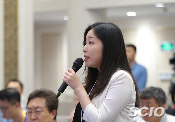 經(jīng)濟(jì)日?qǐng)?bào)記者提問(wèn)(張晗 攝)