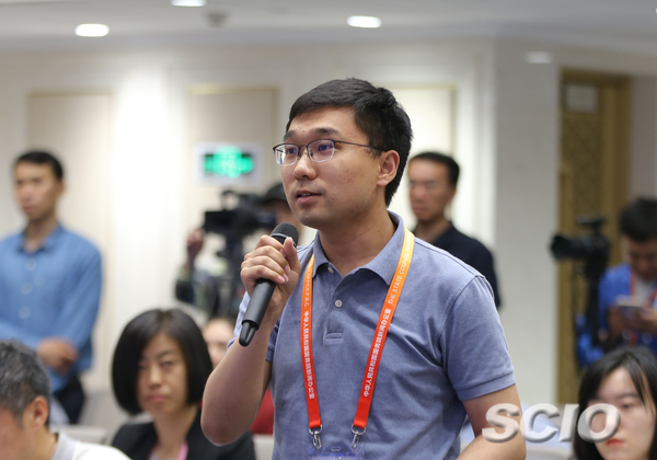 中央廣播電視總臺(tái)國(guó)廣記者提問(wèn)(張晗 攝)
