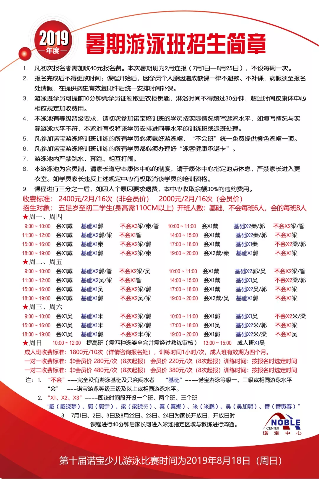 2019諾寶暑期游泳班即將招生啦!