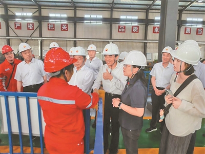調(diào)研組一行在黑龍江大慶油田昆侖集團(tuán)金屬防腐有限公司抽油桿分公司油管一車間內(nèi)調(diào)研