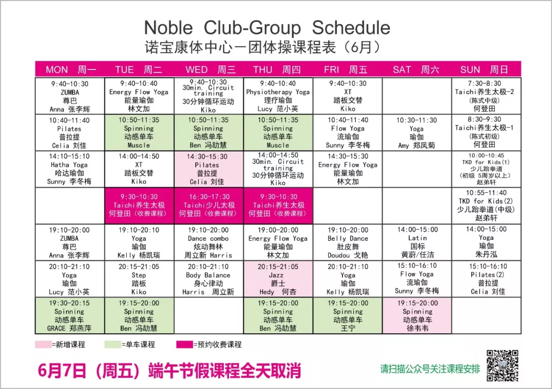 諾寶康體中心團體操6月課程表