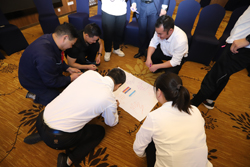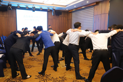 由諾寶中心九個(gè)工會(huì)小組派出的員工,組成四個(gè)代表隊(duì)參加了“破冰熱身、小組建立、默契協(xié)作、友誼長(zhǎng)存”等項(xiàng)目的游戲比賽。隨著培訓(xùn)老師的口令,最受關(guān)注的破冰熱身賽正式開始。四個(gè)代表隊(duì)各自圍成一個(gè)圈,一個(gè)個(gè)左顧右盼,猜拳拉手接龍,做起了“部落之戰(zhàn)、巧解手鎖、驛站傳書、前線速遞”游戲。員工們都是第一次參加這種游戲活動(dòng),既感到新鮮,又顯得活躍,而后續(xù)跟進(jìn)的“風(fēng)中勁草、愛的循環(huán)”等趣味比拼,加上培訓(xùn)老師帶有詼諧色彩的妙語(yǔ)穿插,更是引得現(xiàn)場(chǎng)笑聲連連。