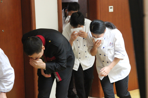 演練開始前,中心安保部進行活動前動員,詳細說明演練規(guī)則和注意事項。隨著冬季來臨,氣溫不斷下降,空氣干燥,消防安全成為中心安全工作的重中之重。通過消防演練,督促全體員工提高消防安全意識,增強消防自救的技能,為中心安全服務(wù)起到積極的促進作用。動員過程中,安保部專職消防員還對滅火器的使用方法作了詳細講解,示范動作要領(lǐng),讓參演員工牢記于心,學(xué)會使用。參演人員當(dāng)場演練了房間失火逃生、使用滅火器滅火、覆滅油鍋起火等滅火技能。