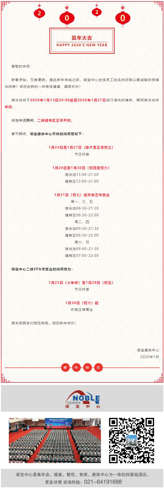 春節(jié)期間諾寶康體中心營業(yè)時間調(diào)整