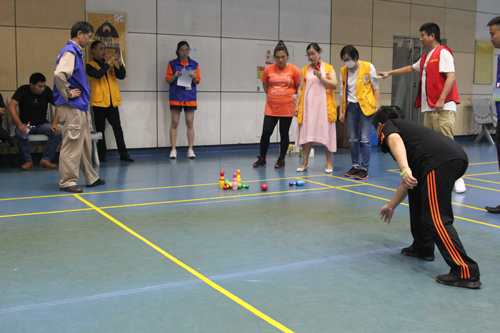 運(yùn)動(dòng)會(huì)結(jié)合智障人特點(diǎn),設(shè)置保齡球、趕小豬、托球跑、套圈、夾彈珠、定點(diǎn)投籃、拍皮球、飛鏢8個(gè)項(xiàng)目。比賽過(guò)程充滿(mǎn)輕松和趣味。選手們參與意識(shí)強(qiáng)烈,個(gè)個(gè)興趣盎然、斗志昂揚(yáng)、你追我趕,既展示了智障人自強(qiáng)不息、執(zhí)著可愛(ài)的風(fēng)貌,也體現(xiàn)了陽(yáng)光之家學(xué)員不示弱、奮力搏的精神,賽場(chǎng)沉浸在歡快的氛圍中。