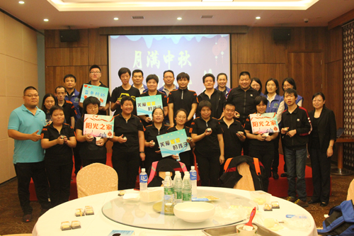 大家欣賞著自己親手制作的月餅,節(jié)日的喜悅之情溢于言表,學(xué)員們更是興奮不已,拿著自己做好的月餅和中心志愿者合影留念,還把月餅放到一個個小包裝盒內(nèi),準(zhǔn)備帶回去跟家人一起分享。