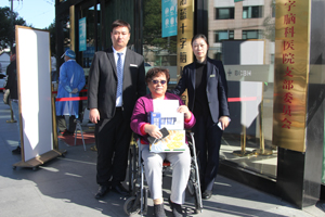 中心黨支部長(zhǎng)期與七寶鎮(zhèn)殘聯(lián)開展共建,每年結(jié)對(duì)慰問七寶鎮(zhèn)八戶重殘無業(yè)殘疾人家庭,了解他們?cè)谏钪杏龅降膯栴},為他們送去牛奶、水果等慰問品和慰問金。12月23日上午,中心志愿者穿街入巷,來到閔行區(qū)腦科醫(yī)院門口,慰問了坐在輪椅上的孤寡殘疾人,該殘疾人為孤獨(dú)老人,沒有孩子,本人患有腦神經(jīng)癱瘓,需要有人專門護(hù)理,例如定時(shí)洗漱、飲食等,為了減少麻煩,她不得不住進(jìn)腦科醫(yī)院病房。中心志愿者為她送上慰問品、慰問金,老人高興地說:“非常感謝諾寶中心的關(guān)心,我現(xiàn)在雖然是一個(gè)人,但是大家都很關(guān)心我,我感覺很幸福?!?
